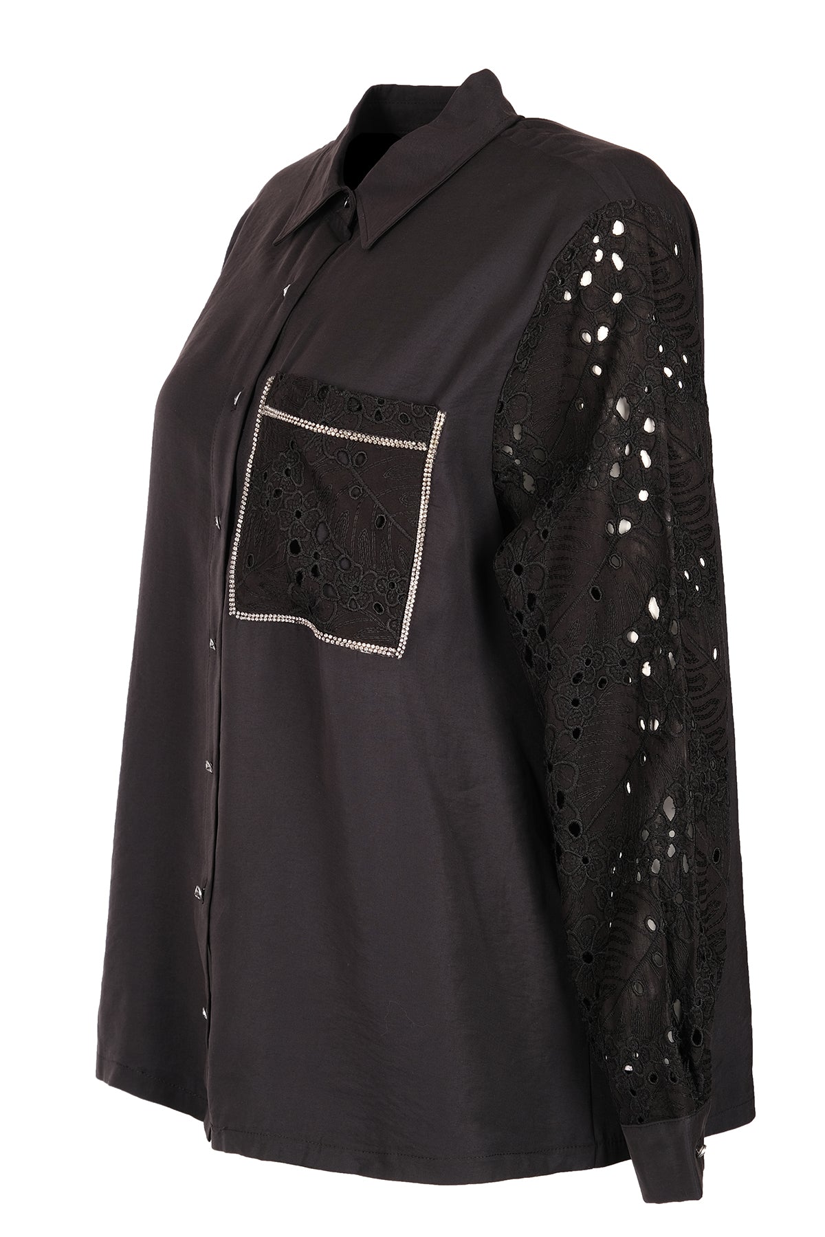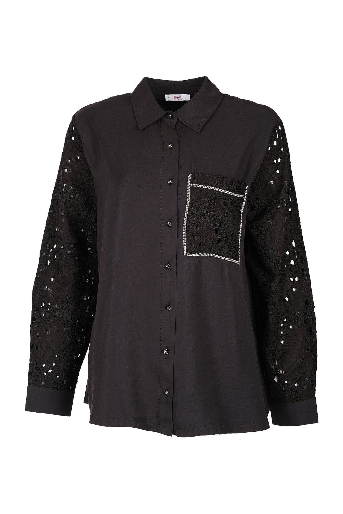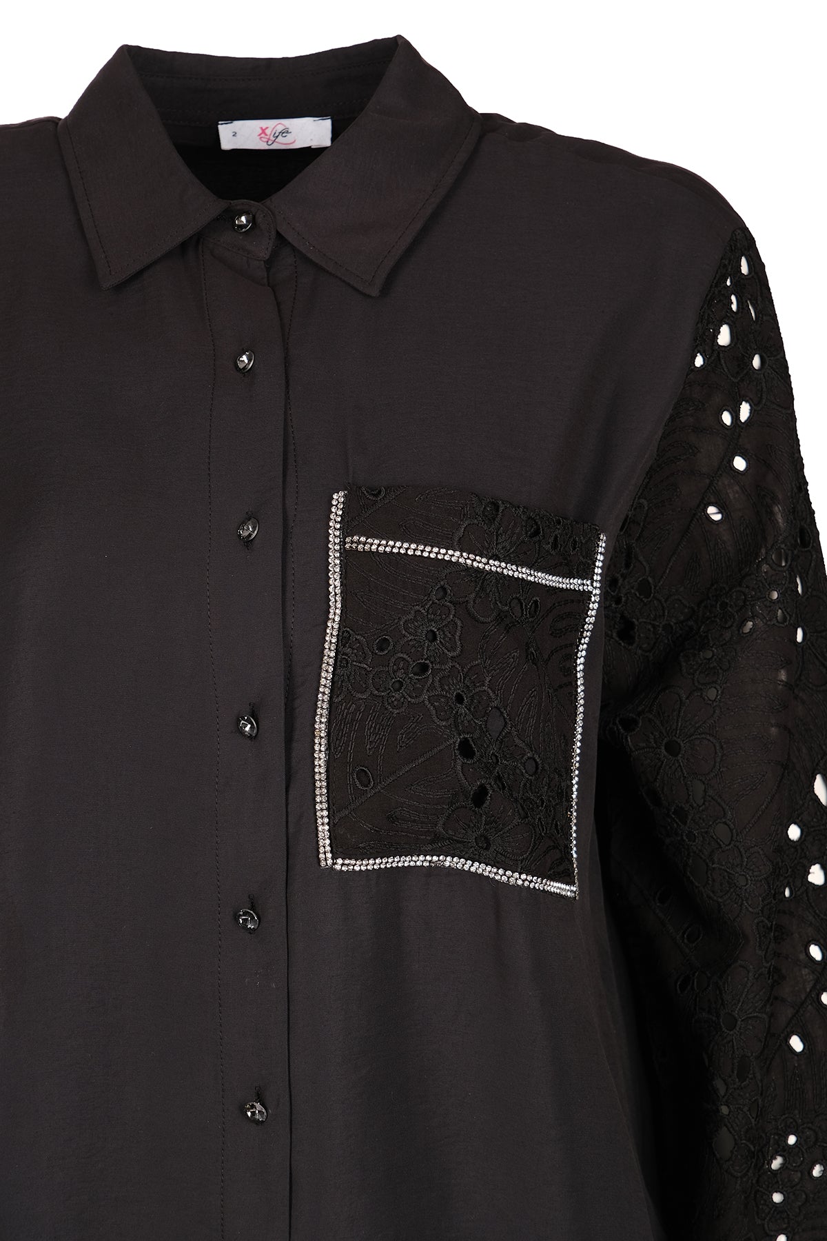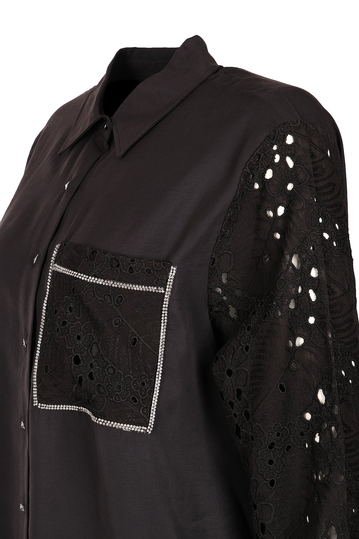 Vedi-bb Oversize Dantel Detaylı Uzun Kol Kadın Gömlek - Minimalist Stil