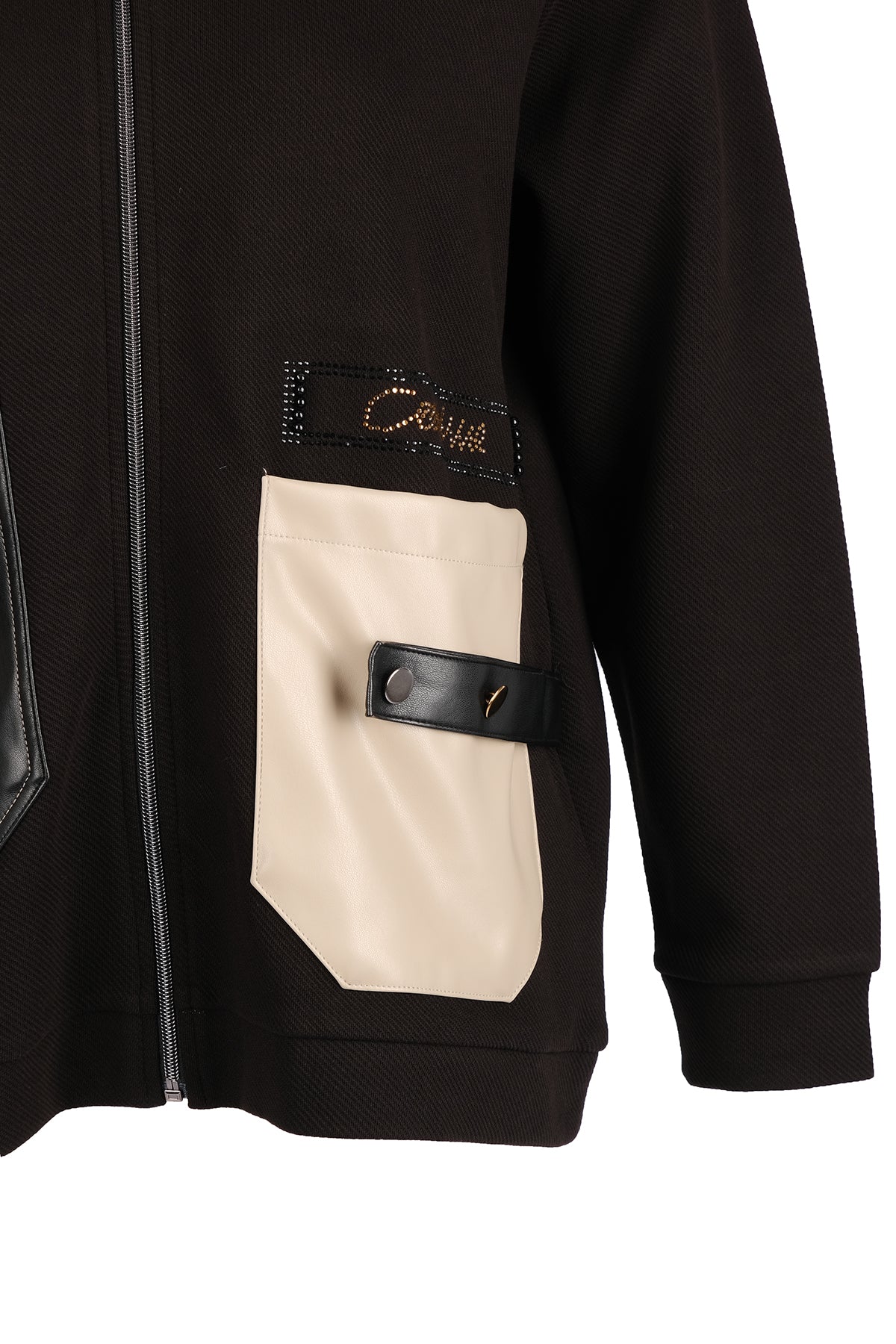 Vedi-bb Oversize Kapüşonlu Fermuarlı Cep Detaylı Kadın Ceket - Minimalist Streetwear