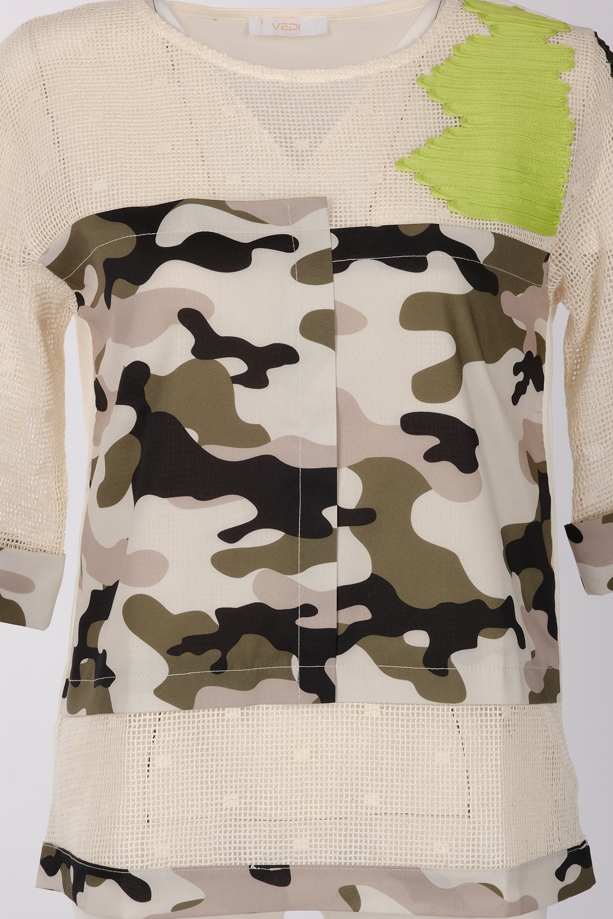 Vedi markasının şık ve modern tasarımıyla dikkat çeken 3/4 kollu kadın bluzu, gardrobunuzun yeni favorisi olacak. Kamuflaj...