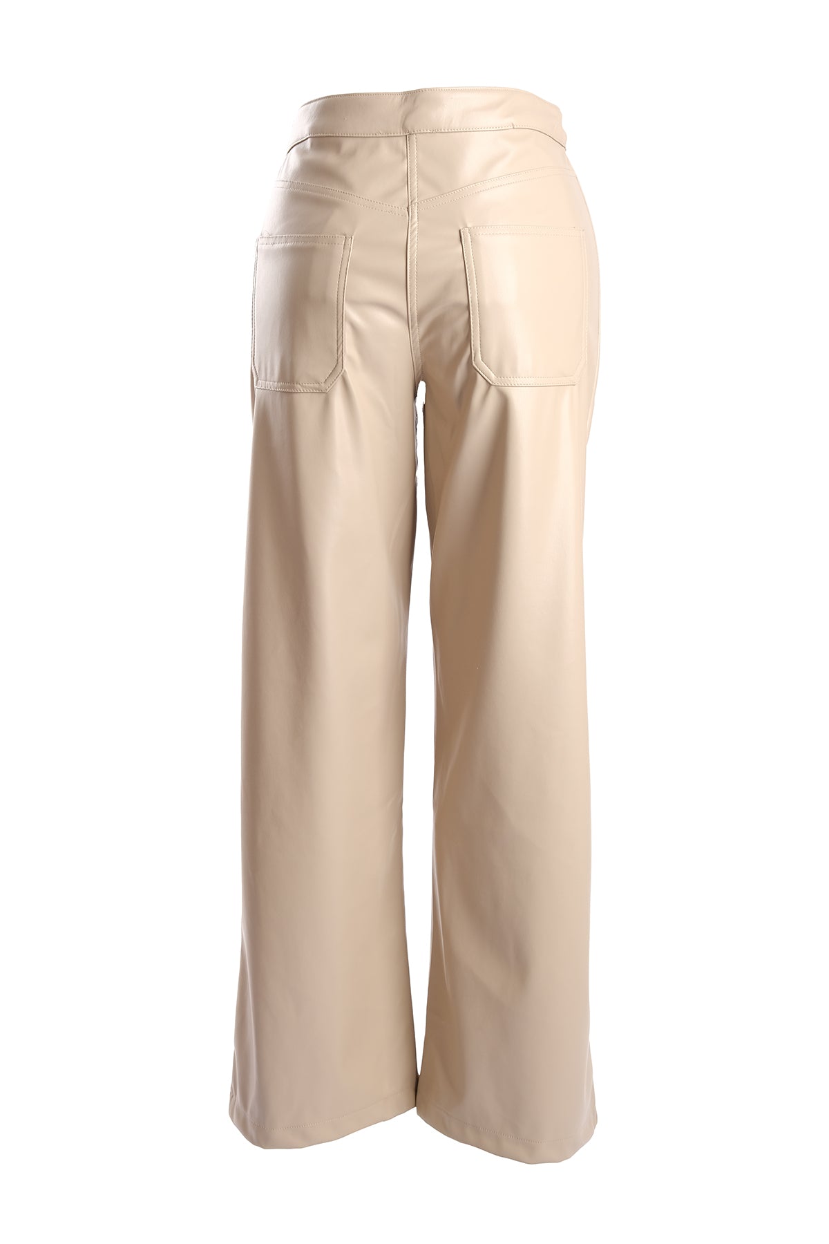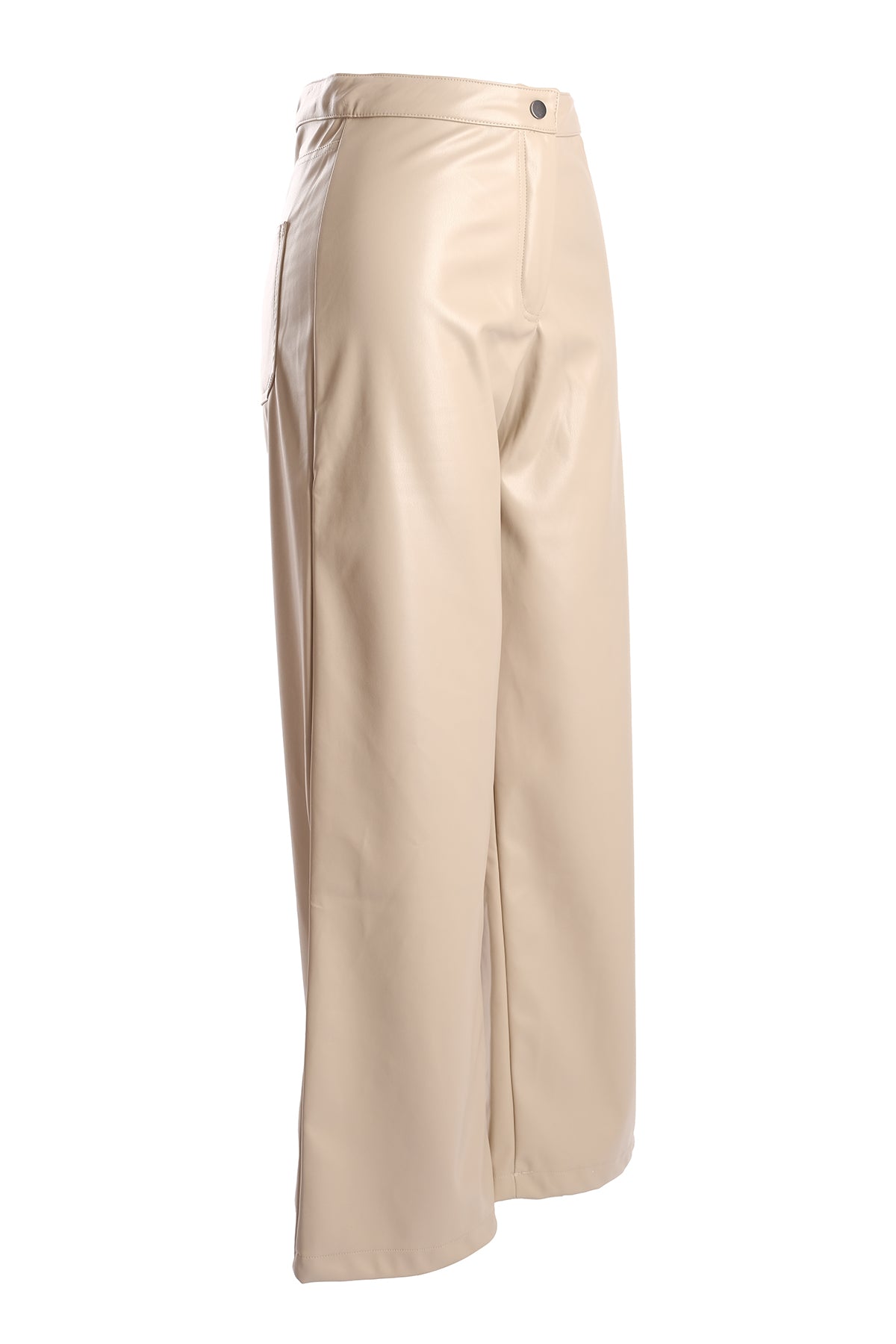 Vedi Minimalist Deri Yüksek Bel Geniş Paça Kadın Pantolon - Günlük & Şık