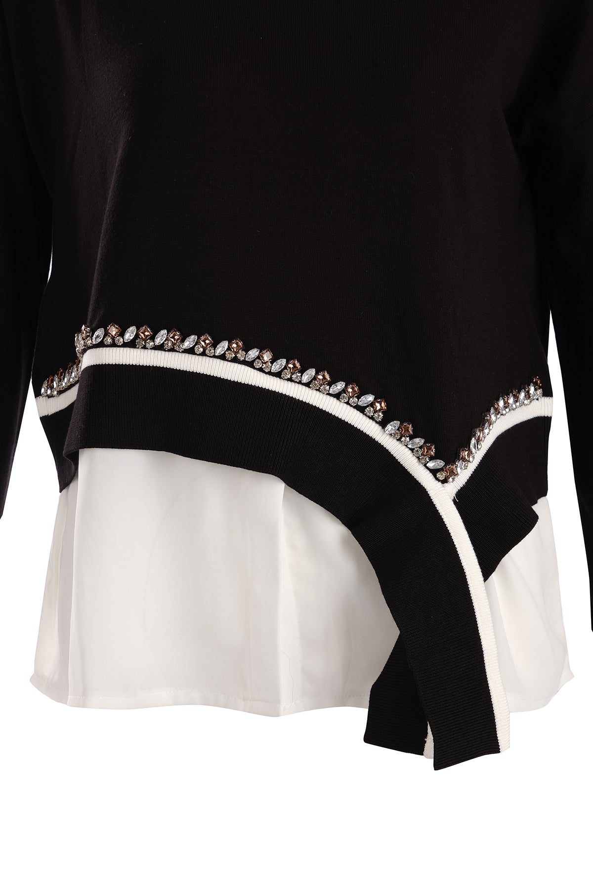 Vedi Oversize Taş Detaylı İki Katmanlı Uzun Kol Kadın Kazak