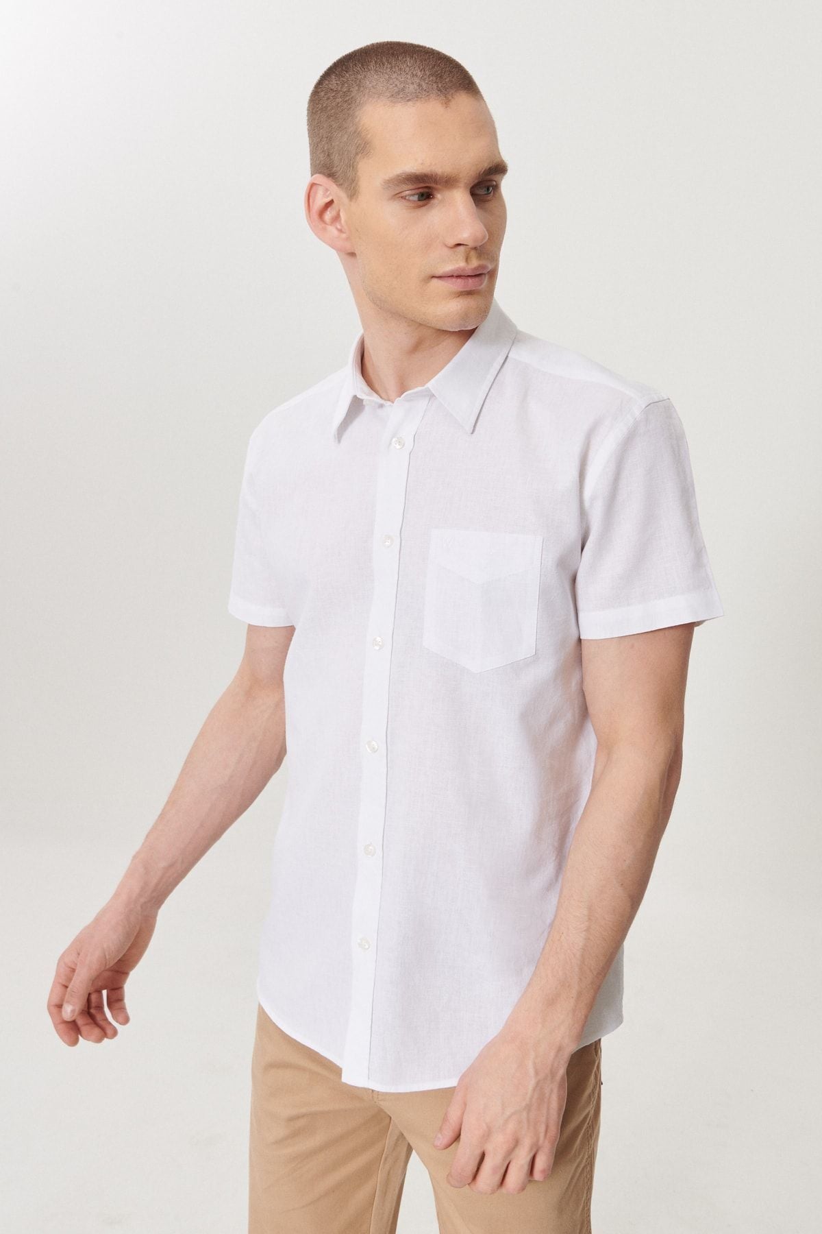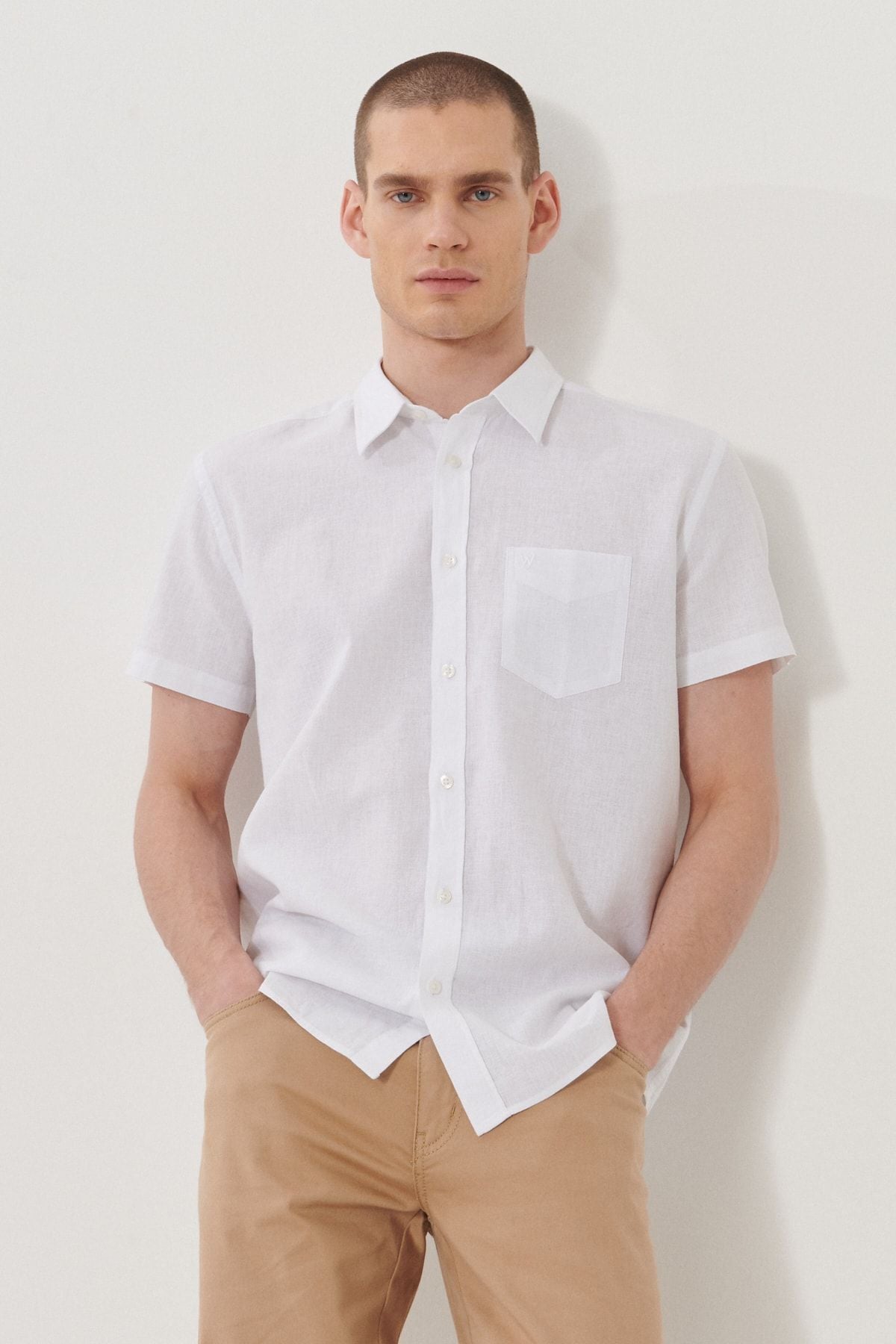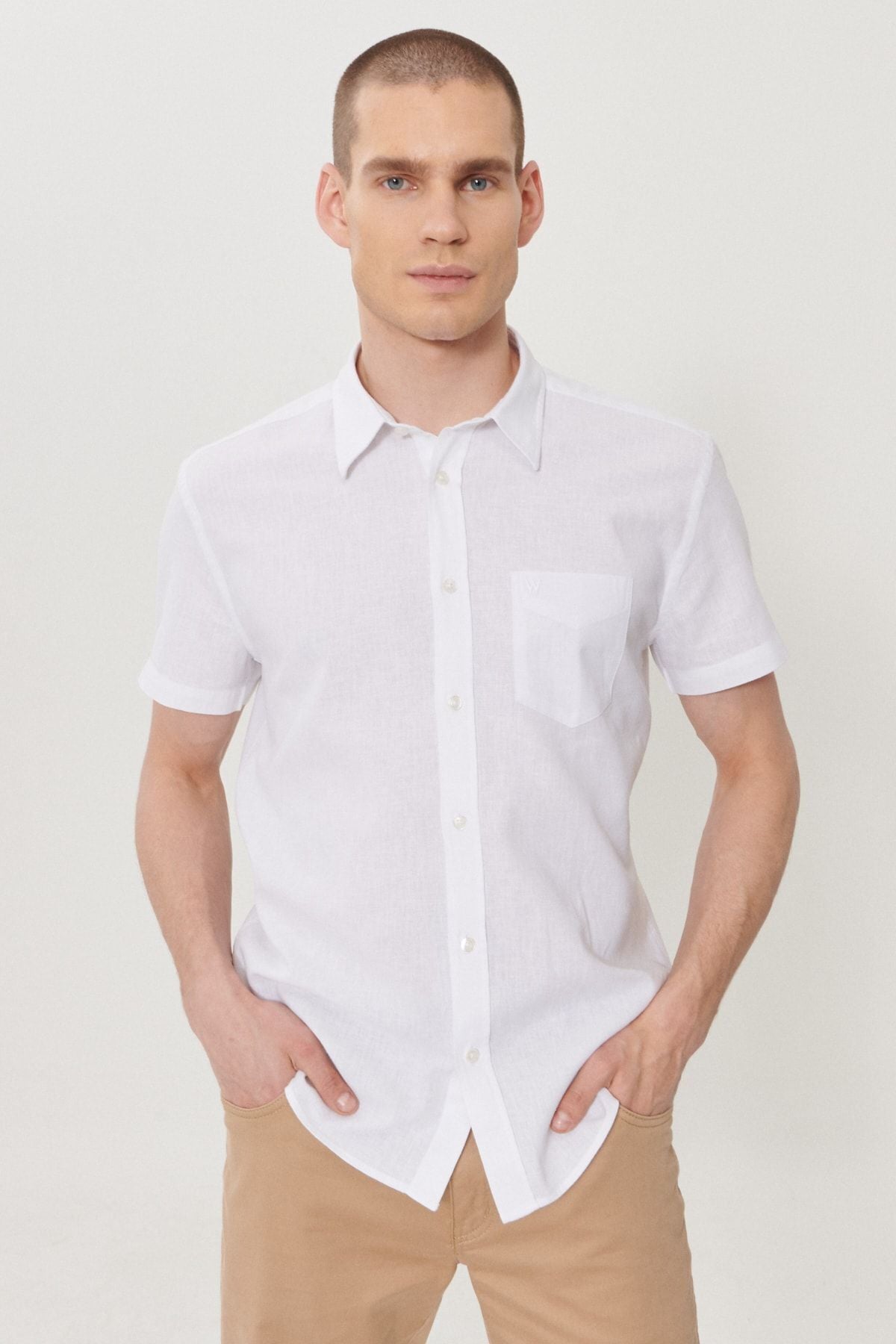 - Manken Bilgisi : Beden : M/48 Boy : 187 cm Göğüs : 97 cm Bel : 76 cm; - Ürün Ölçüleri (S Beden Ölçüleridir) : Göğüs Ölçü : 51.5 cm Boy Ölçü : 73.3 cm Omuz Ölçü : 46.8 cm Kol Ölçü : 19 cm; - Kumaş Bilgisi : %100 Pamuk; - Kalıp : Regular Fit; - Yaka : Gömlek Yaka; - Kol : Kısa Kol; - Cinsiyet : Erkek; - Ürün Adı : Regular Fit Normal Kesim Kısa Kollu Düğmeli Yaka Keten Gömlek;