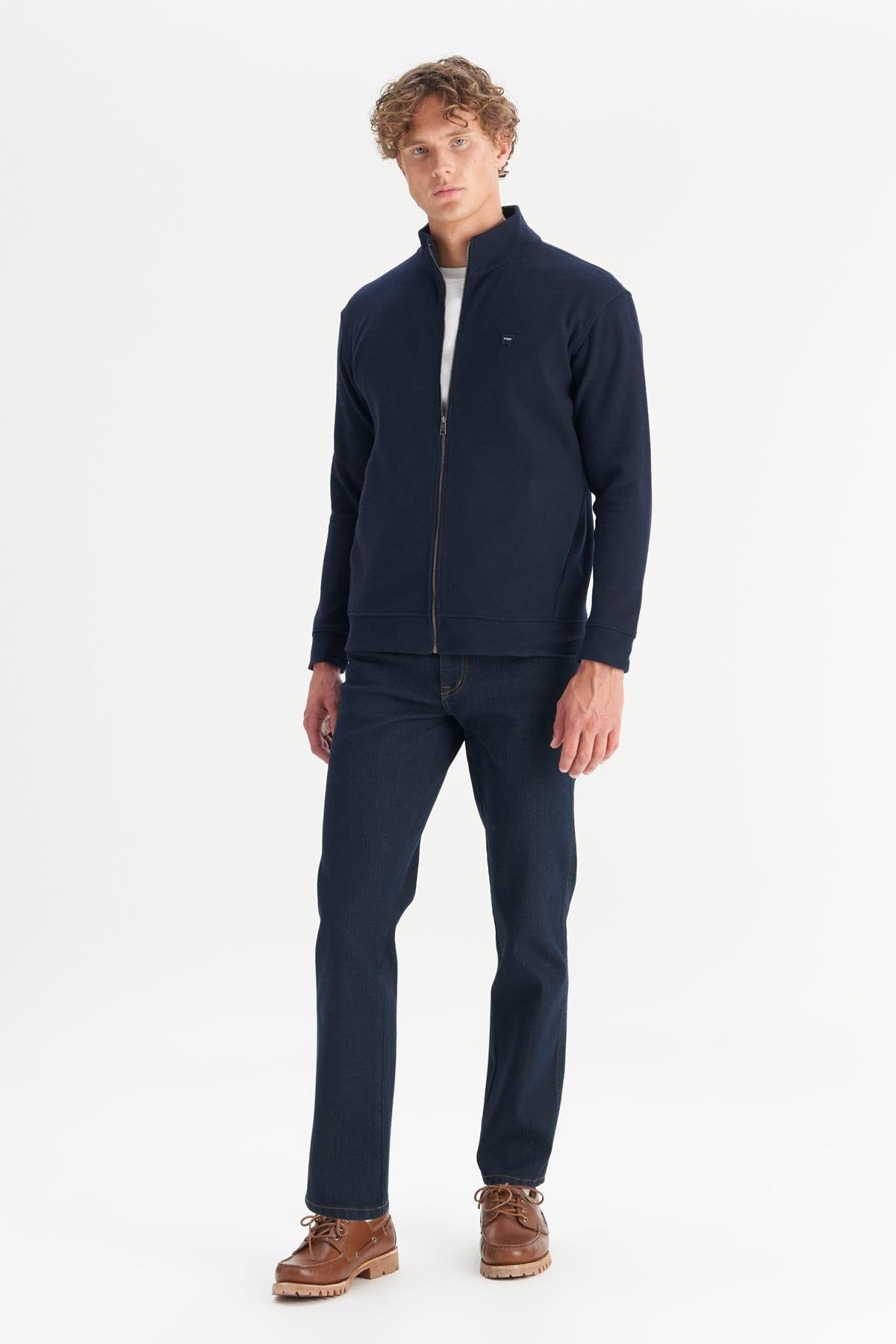 Wrangler Erkek Relaxed Fit Dik Yaka Fermuarlı Selanik Örgü Sweatshirt