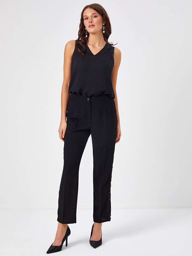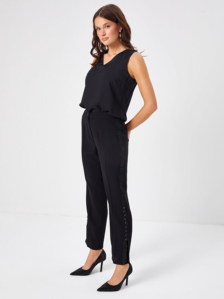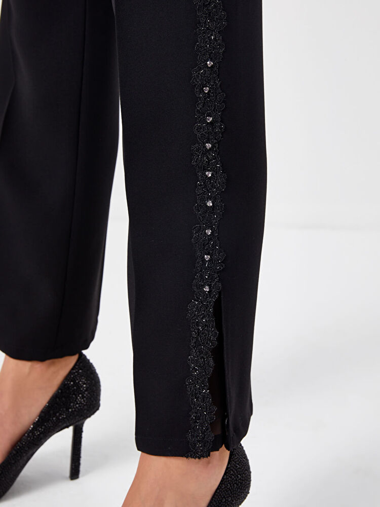 Yanı Dantel Ve Taş Süslemeli Slım Fit Pantolon Faik Sönmez